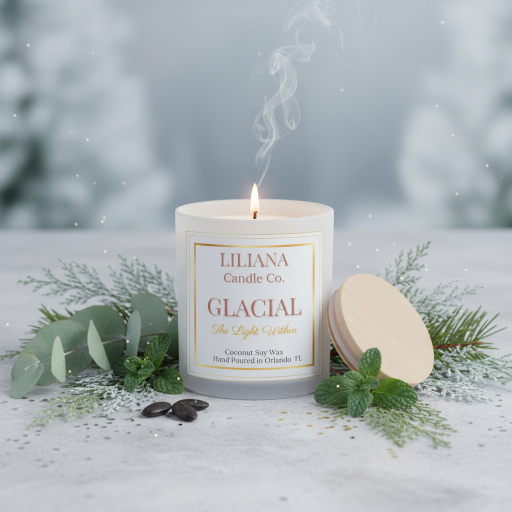 Cool and sophisticated, Glacial is inspired by frosted landscapes and glimmering snow. Notes of eucalyptus, mint, cypress, and tonka bean create a refreshing, airy ambiance that’s both calming and luxe.