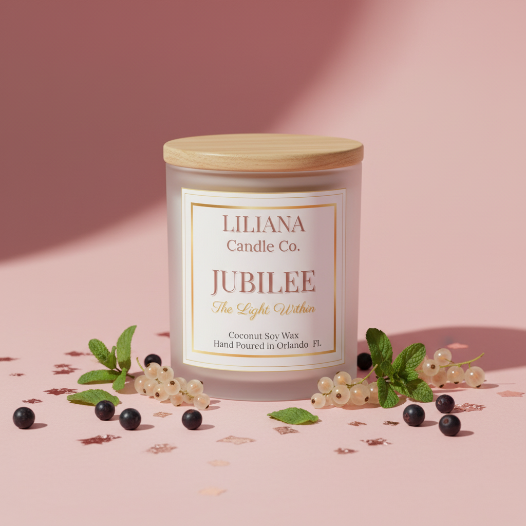 A festive celebration bright white currant, cool peppermint, and juicy juniper, rounded out with black currant and a touch of rose gold shimmer. Uplifting, merry, and slightly sweet.